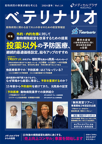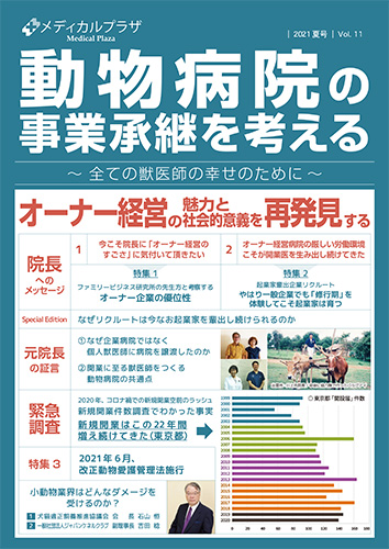 (株)メディカルプラザでは2012 年より毎年一回、動物病院の事業承継情報誌「動物病院の事業承継を考える」を発刊しています。